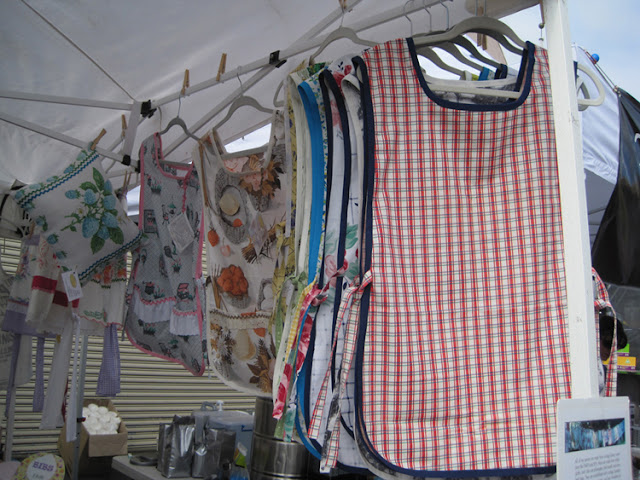 One of the more arresting products for sale by a vendor were the old-timey kitchen aprons pictured here. I literally did a double-take when I spotted these, because I can remember aunts and grandmothers wearing a version of this design, sometimes for hours, whether they were in the kitchen or not. Talk about history repeating itself. A new generation of cooks is embracing this simple concept that’s apparently timeless, and available in fun and colorful vintage fabrics. This vendor was Oh Sew Penny (check out the selection at ohsewpenny.com).